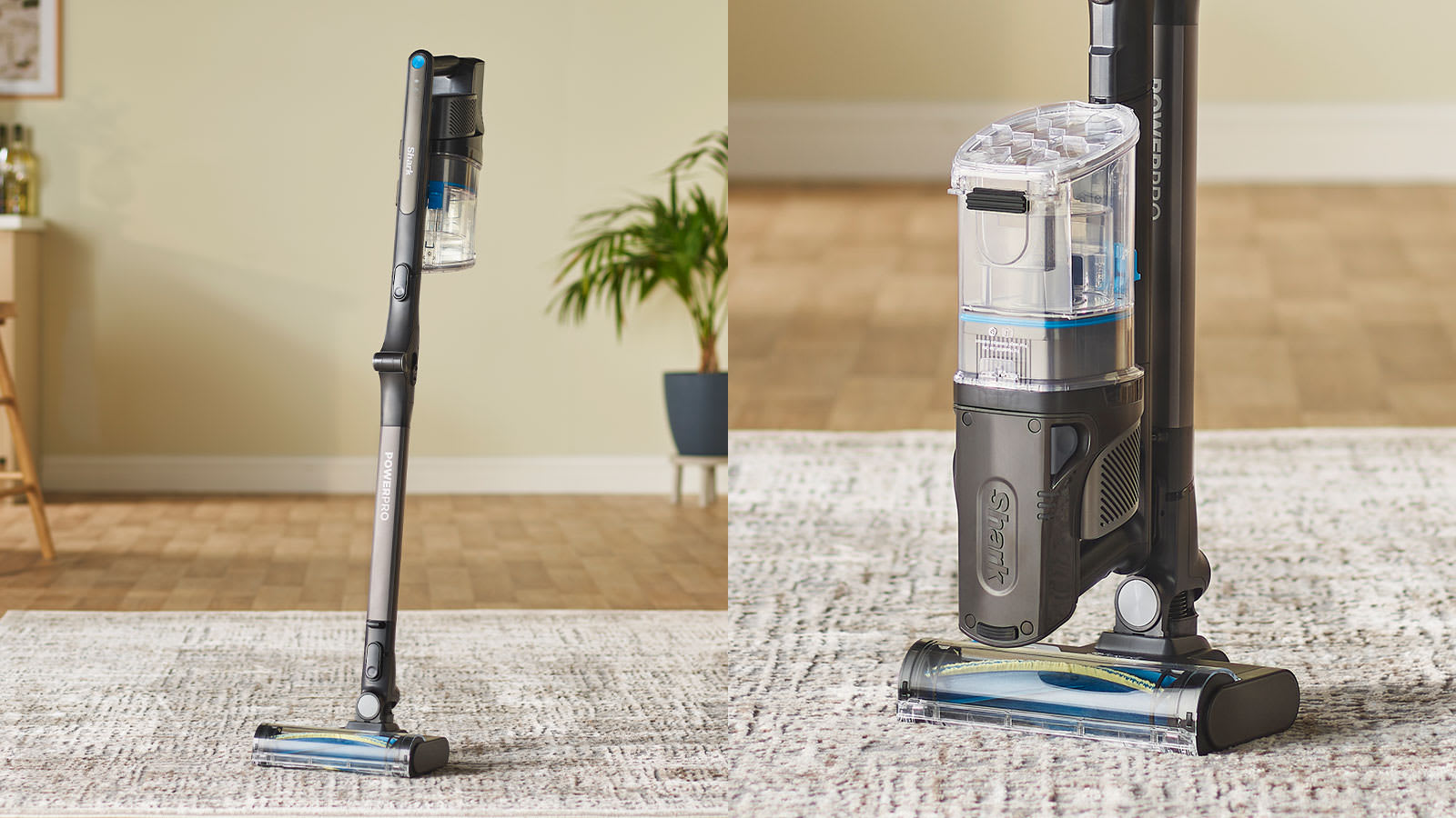 Flexology allows the Shark PowerPro wand to bend, making it easy to clean under furniture. LED headlights illuminate dark areas so you can easily spot dust and hidden debris. Once you’re done, simply fold the wand over for compact, freestanding storage. The removable battery ensures easy, convenient charging anywhere.