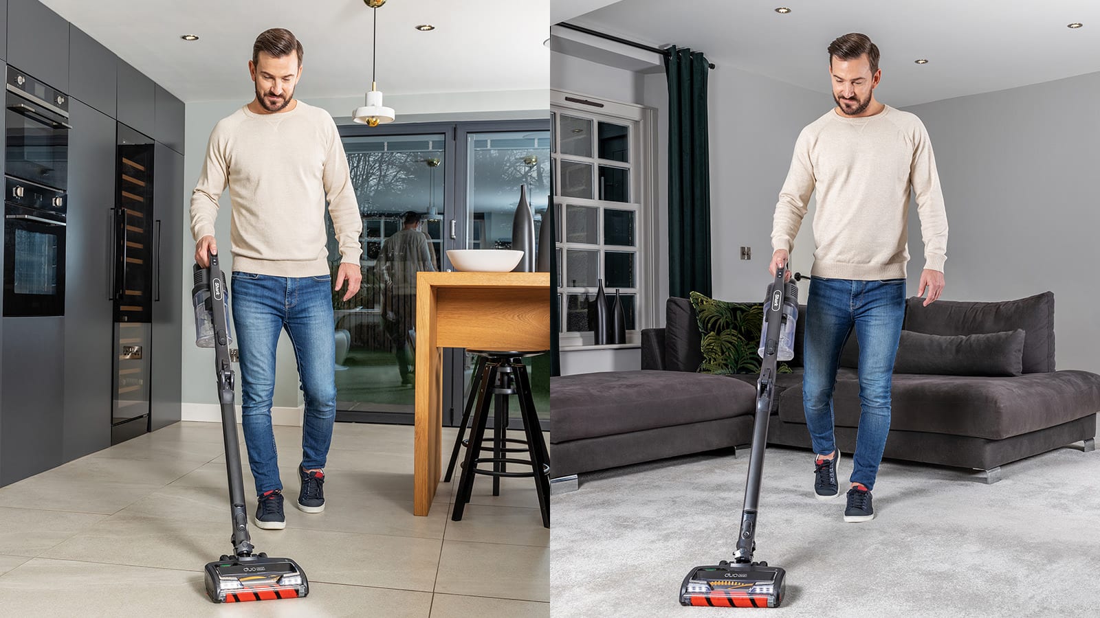 Shark’s signature DuoClean floorhead combines two motorised brush-rolls, working together to clean both carpets and hard floors. Glide seamlessly across all floor types with no need to stop or change floorhead.