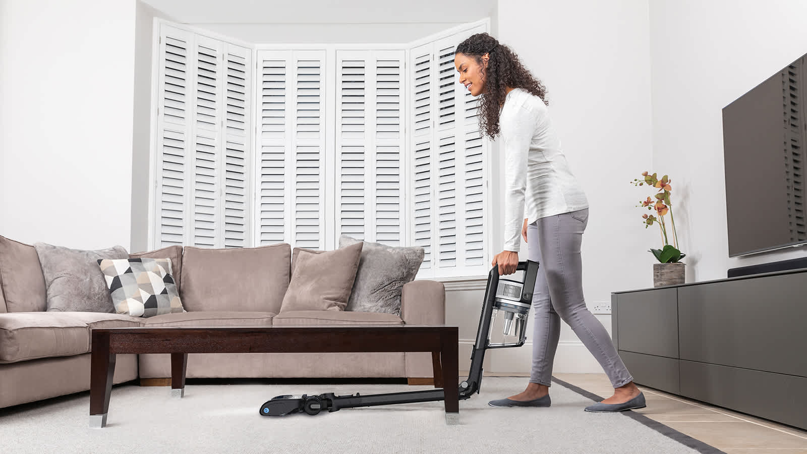 At the touch of a button, the Flexology wand bends to easily clean under low-lying furniture including beds, sofas and coffee tables. When you’ve finished cleaning, simply fold down for freestanding, compact storage – no need for storage hooks or leaning against walls.