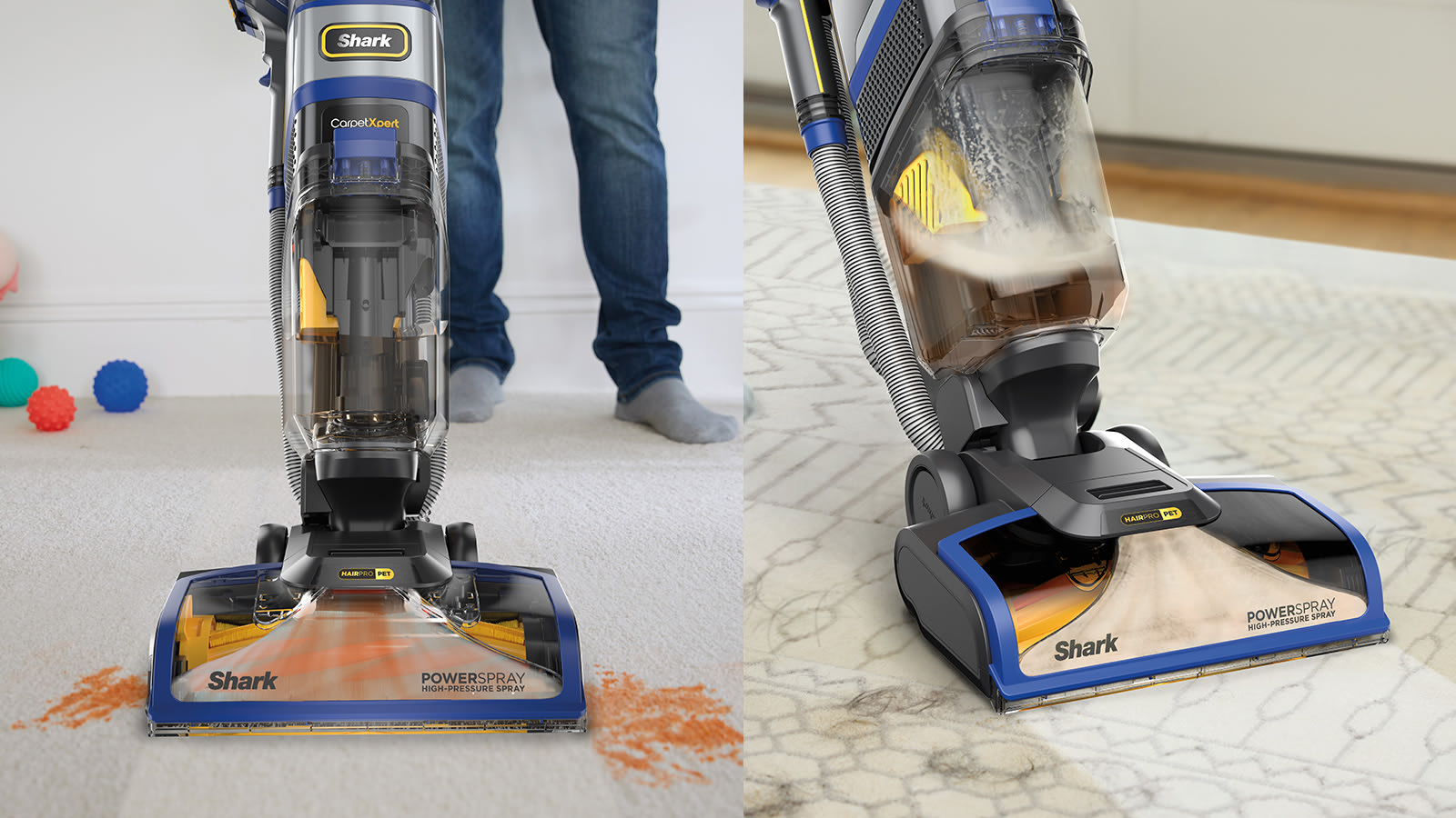 Deeper cleaning than a regular vacuum**: Quickly revive carpets and rugs for back-to-new results. A high-pressure spray cleans deep into carpet fibres without oversoaking them, evenly distributing water and Shark’s bespoke carpet cleaning formula. The high-speed brush-roll maintains contact with your carpets at every turn – 6 rows of uninterrupted bristles leave no cleaning gaps where dirt may be missed. Shark’s powerful suction extracts deep-down dirt, grime, hair and fur and liquid with a fast dry time, leaving carpets clean and revived, and instantly eliminating odours. Anti-clog suction allows hair to freely pass into the dirty water tank. Finish your clean with Dry Only mode to dry with suction, without dispensing water or cleaning solution.