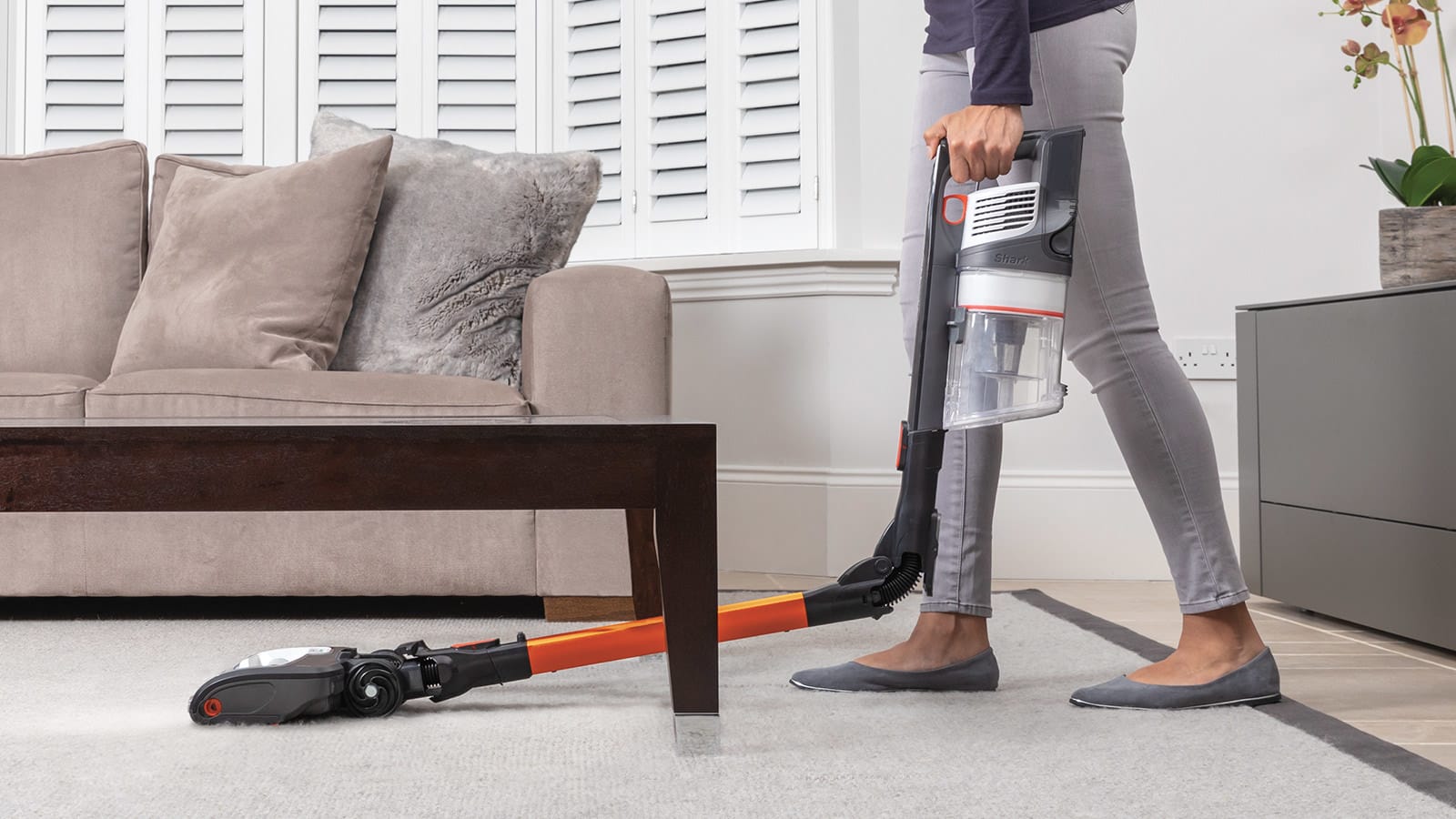Shark’s signature DuoClean floorhead combines two motorised brush-rolls, working together to clean both carpets and hard floors. Glide seamlessly across all floor types with no need to stop or change floorhead.