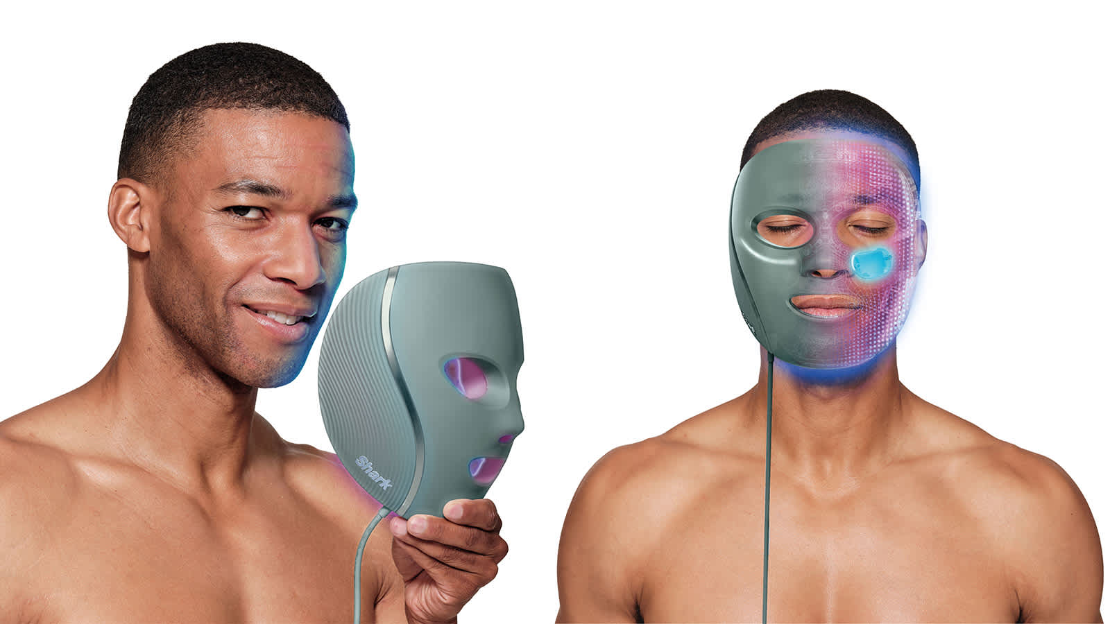 Meet our Exclusive Shark Skincare Bundle: Featuring the Shark CryoGlow LED Mask in Sage and Shark FacialPro Glow System in Black.