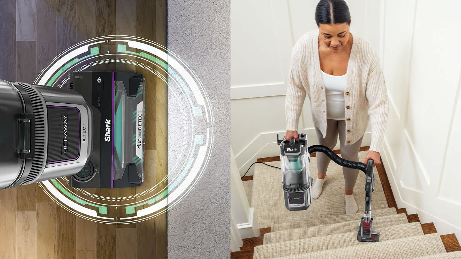 A Lift-Away Technology gives you the flexibility to transform your upright vacuum into a portable cleaner in seconds. Perfect for stairs, under furniture, above-floor surfaces, and even your car, the Shark Detect is your all-in-one solution for whole-home cleaning.