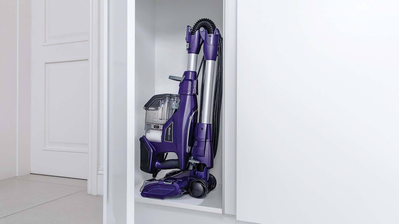 Unique to Shark, DuoClean Technology lets you glide between carpets and hard floors without stopping to switch heads. Featuring two brush-rolls in one vacuum head, the specially designed brushes draw in large and small debris from carpets while lifting fine, stuck-on dust from hard floors. No more ‘snow ploughing’, no more spreading mess, just brilliant cleaning performance.