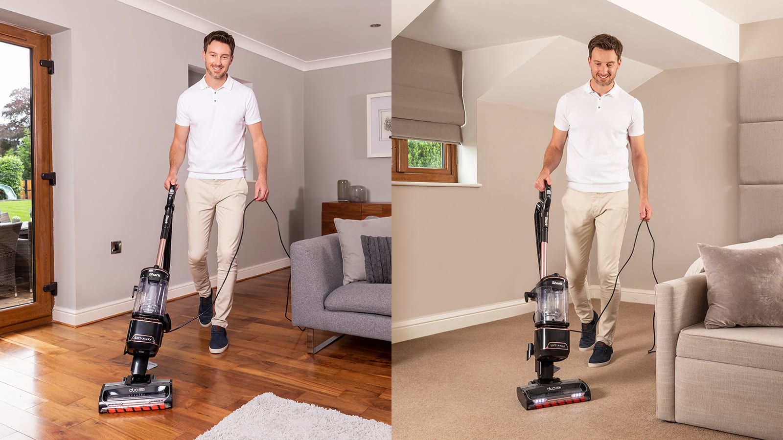 Glide from carpet to hard floor with Shark’s signature DuoClean floorhead. Two motorised brush-rolls work together in one floorhead, seamlessly cleaning all types of flooring.