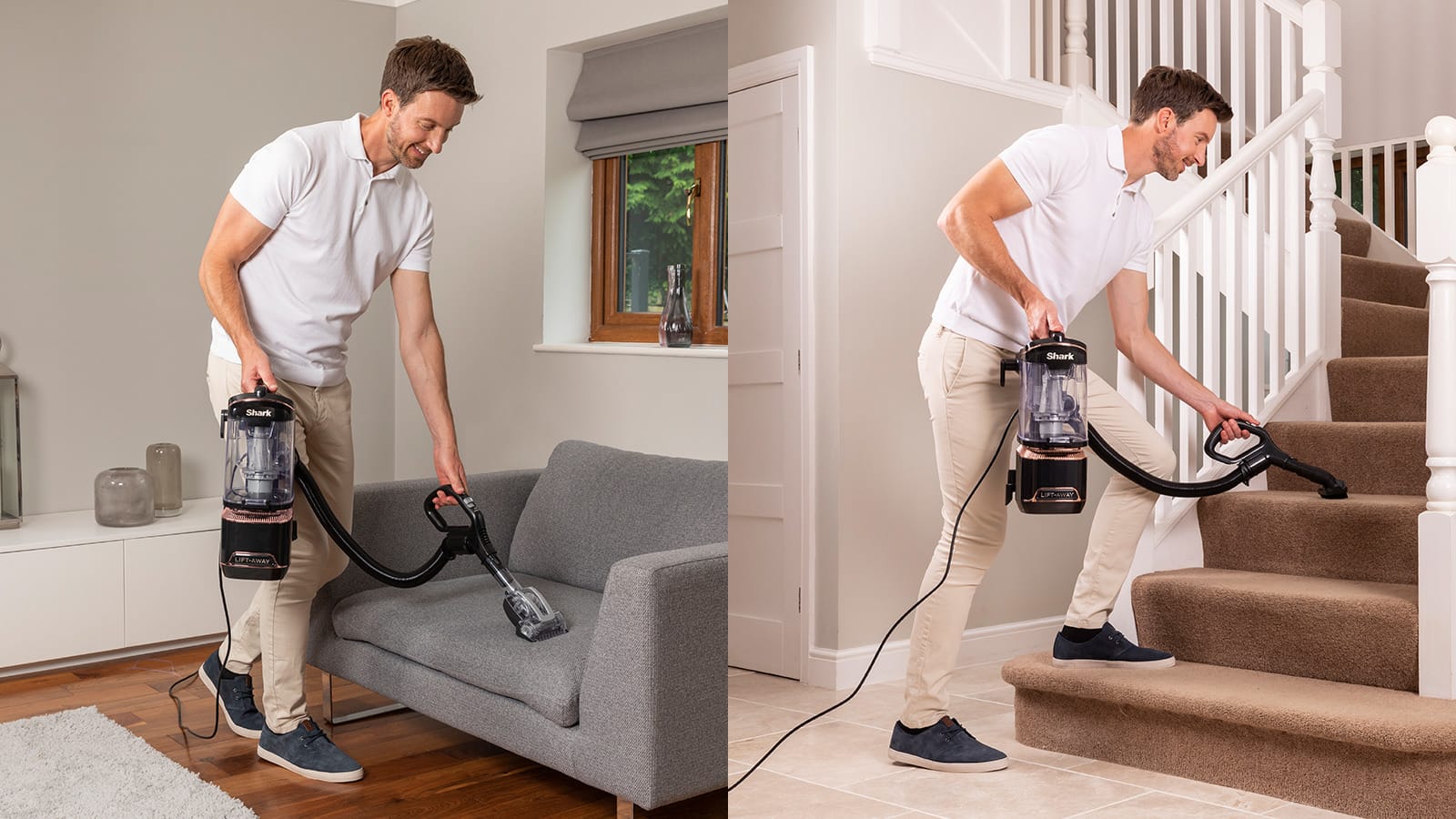 Transform this powerful upright into a lightweight portable vacuum with Shark’s signature Lift-Away Technology, easily cleaning stairs, sofas and up high.