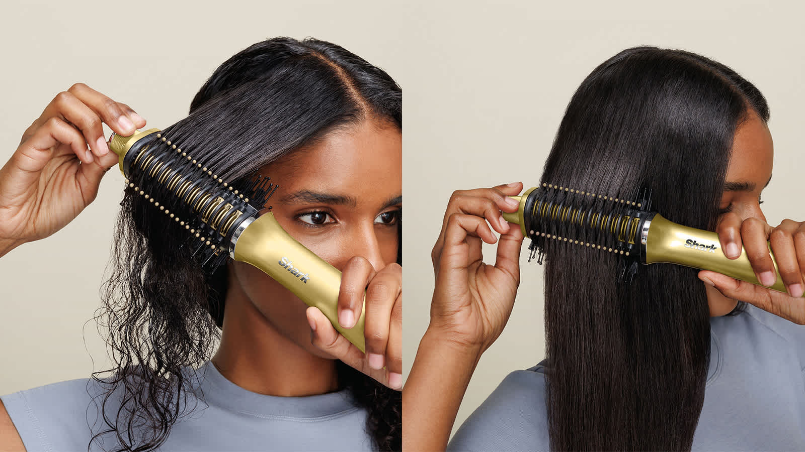 Achieve a glossy, bouncy blow-dry that lasts all day***, whether your hair is wet or dry. Sleek and smooth or big, glossy volume? You don’t have to choose. Whatever your hair type, enjoy that fresh-from-the-salon look – and feel – every single time with the Shark Glossi 2-in-1 Hot Tool and Air Glosser.