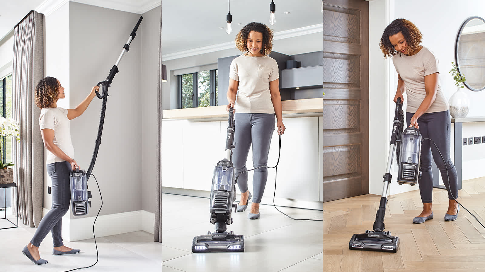 This powerful Shark upright vacuum cleaner instantly switches between carpet and hard floor settings at the touch of a button.