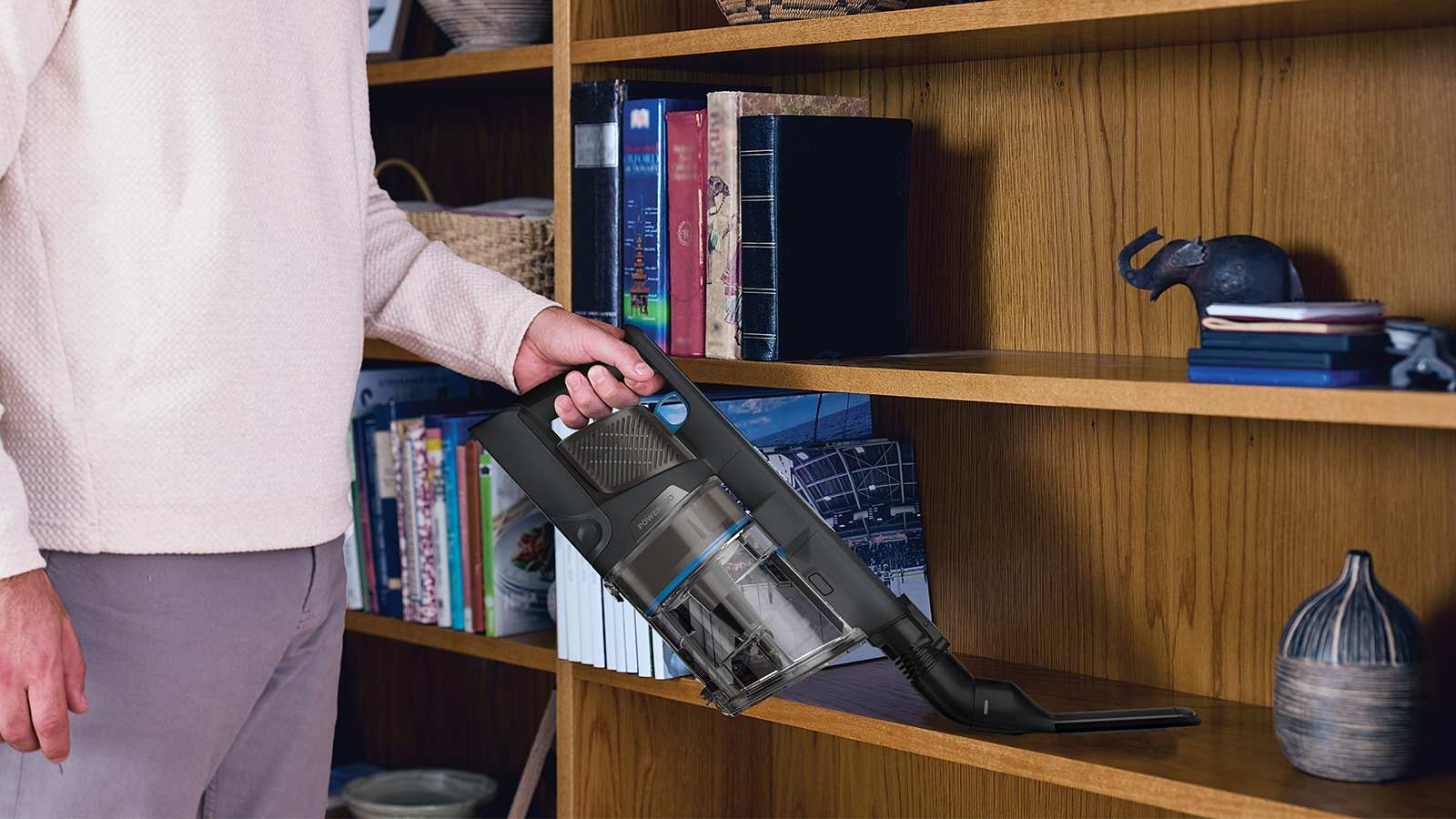 - Flexology allows you to bend the wand to easily clean under furniture or fold it over for compact, freestanding storage.