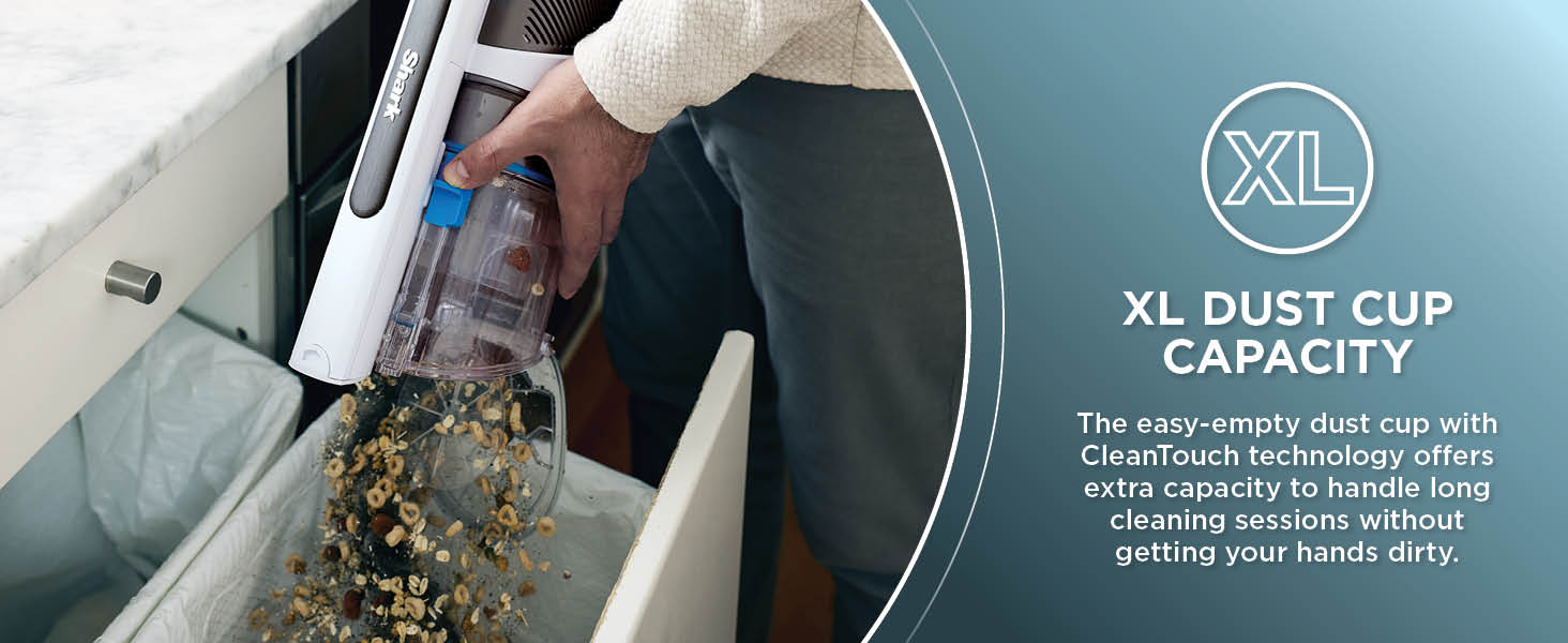 Up to 50 Minutes Runtime** delivers top-to-bottom, deep cleaning on a single charge. The XL dust cup capacity means you can spend more time cleaning and less time emptying.