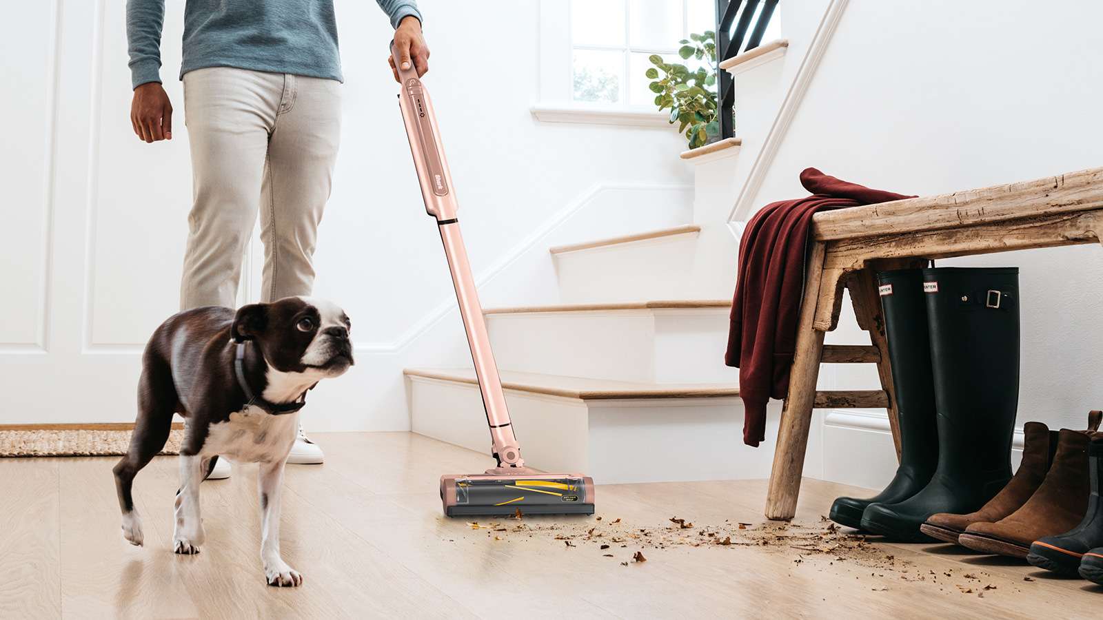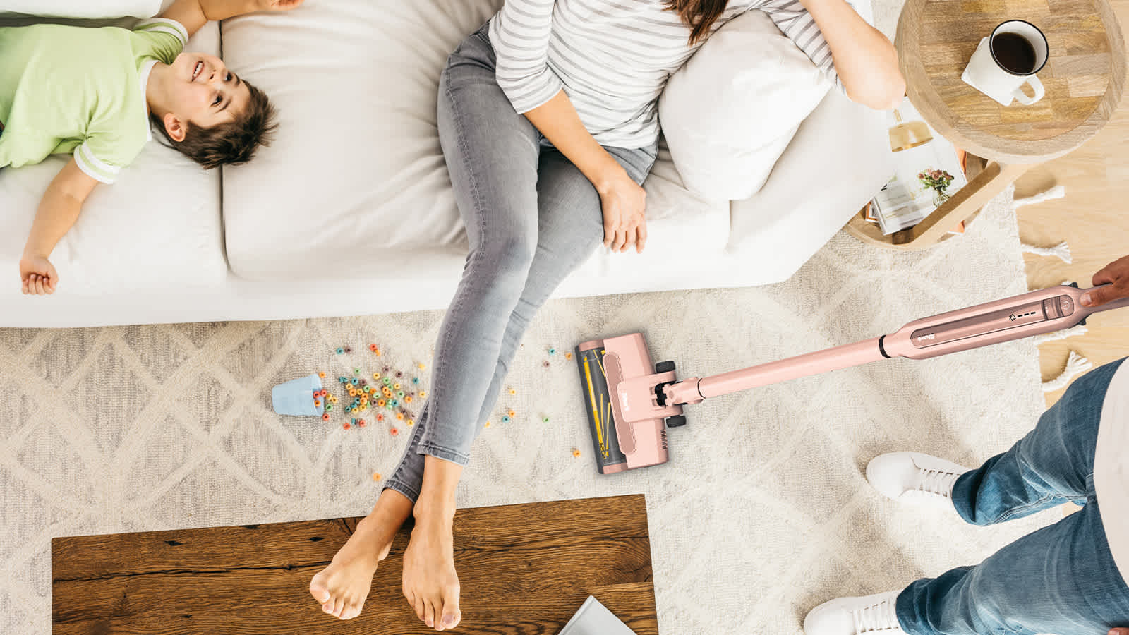 - Ultra-lightweight cordless vacuum in rose gold transforms from Floor mode to Handheld mode